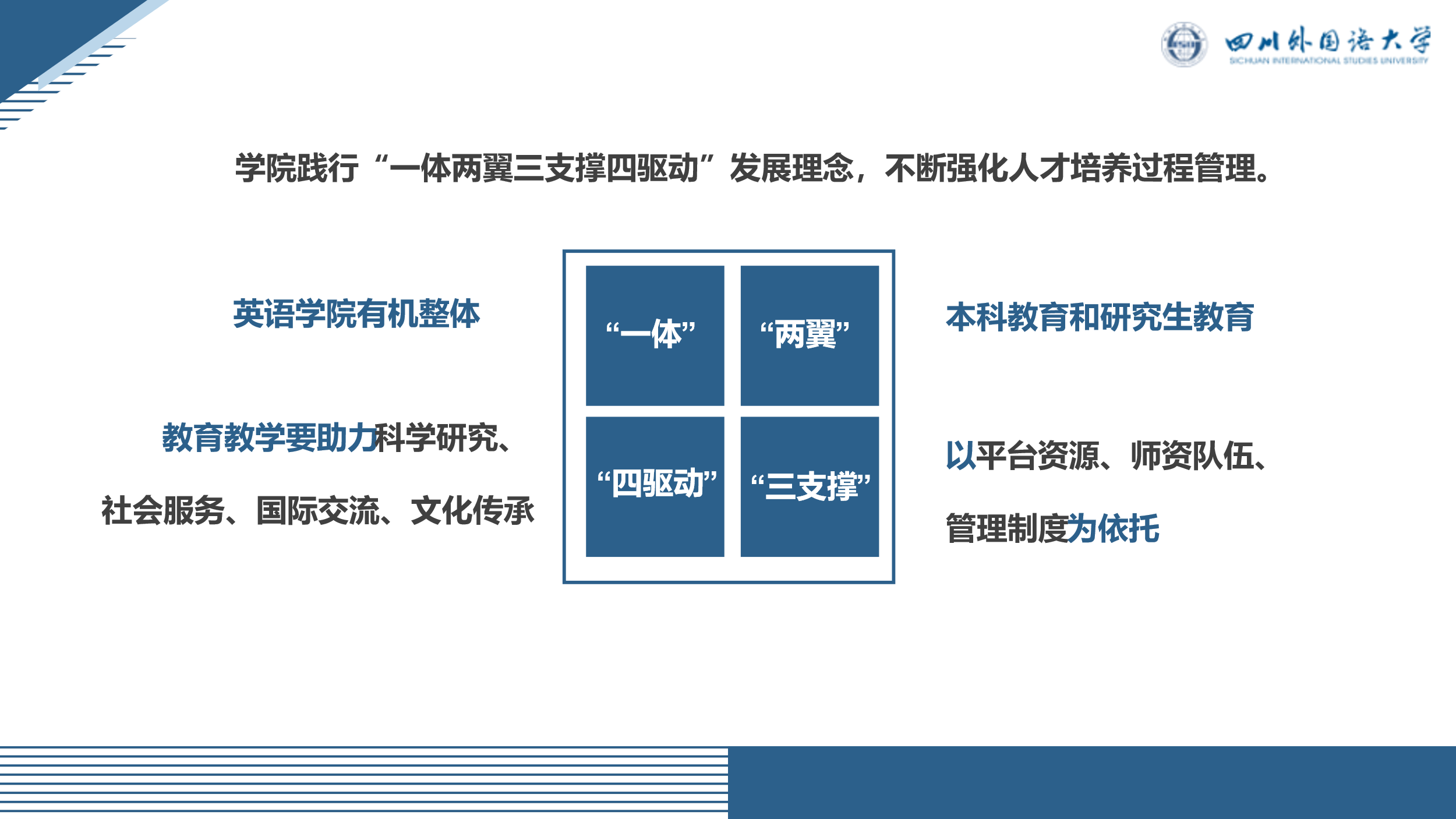 公司落实“三全”育人和“立德”树人根本任务,致力于培养德智体美劳全面发展,专业知识和技能扎实、中西人文素养全面、思辨创新意识敏锐、国际视野广阔、个人人格健全,能直接服务“中国文化走出去”、“陆海新通道”之国家战略和“成渝双城经济圈”之区域发展规划,熟练使用英语从事外交、外事、外企、教育、跨文化交流及学术研究等相关工作的高素质、高层次英语专业复合型人才。
