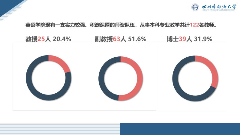 英语公司所属一级学科“外国语言文学”连续2次获批重庆市一流学科,在全国第五轮学科评估中,我校“外国语言文学”进入全国前12%,成功跻身第一方阵;在软科“中国最好学科”排名中,公司“外国语言文学”自2021年连续位列前5%。公司所属二级学科“英语语言文学”为重庆市重点学科,本科“英语专业”为国家级一流专业建设点和重庆市特色专业建设点。在上海软科“中国大学专业排名”中,“英语专业”2023年在全国496所高校中排名第21位,被评为A级。