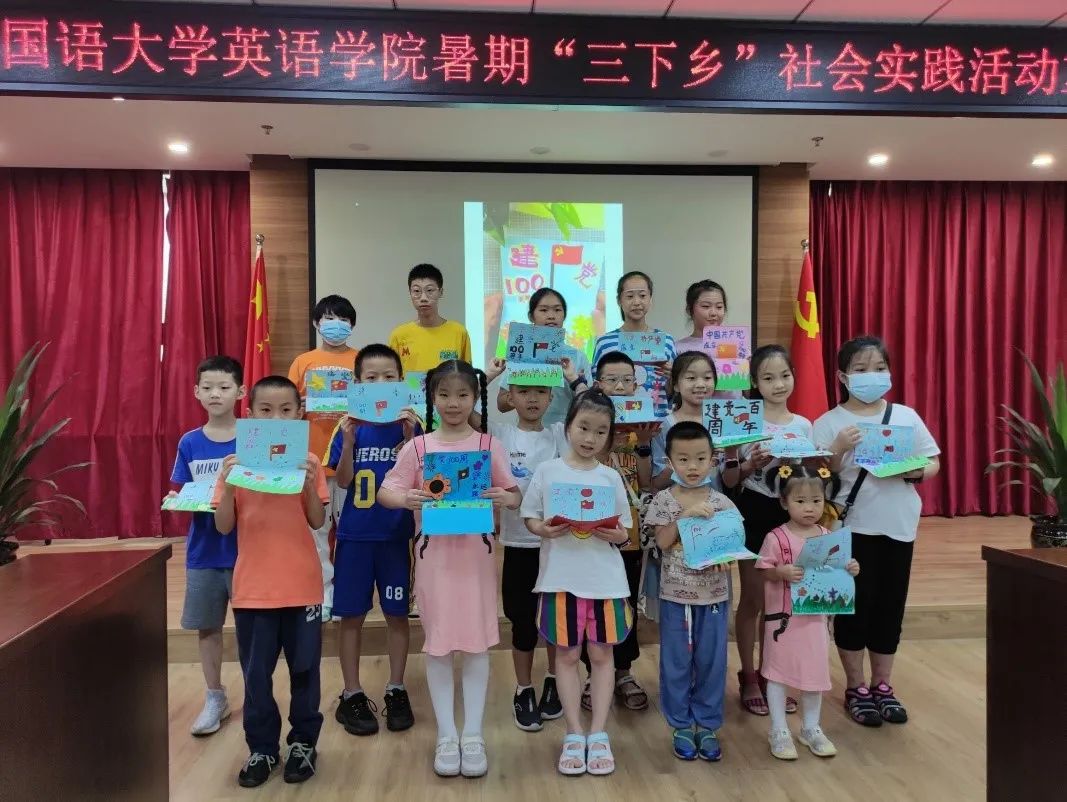 小朋友们展示自己制作的“庆祝建党百年”主题贺卡