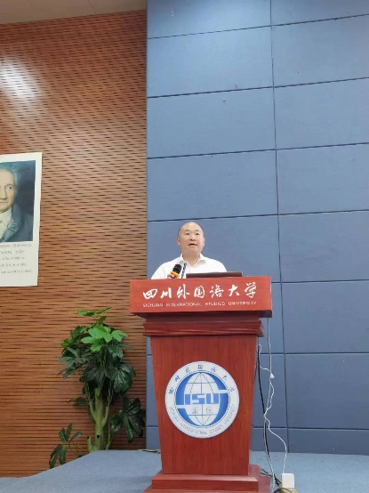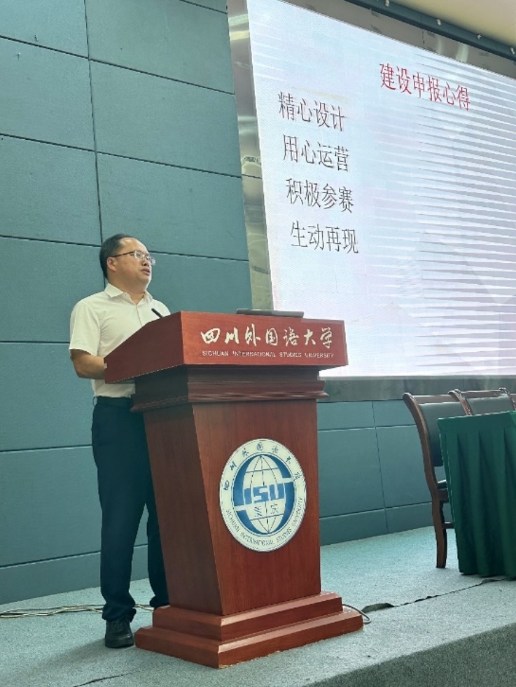 第四位汇报人是国家级一流课程《时政视听说(1)》主持人魏涛,主要针对该国家级一流课程的建设历程、成功申报的经验以及未来建设规划进行了简要汇报。通过图文并茂的展示,魏涛直观地向与会人员演示了该课程听力通关和时政专题两大主要模块的教学设计样例和主要特色。课程以高强度、宽题材的线上线下英语视听说训练,帮助员工提高英语听说能力,拓展各类时政专题知识,培养员工自主学习、独立分析和解决问题的能力以及思辨能力,并且有机融入思政元素,引导员工树立正确的价值观,激发员工的爱国情怀,增强员工的“四个自信”。