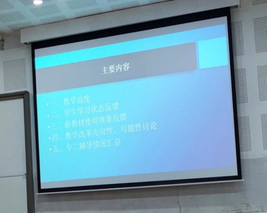 本次教研室活动分四个环节。第一个环节由教研室全体教师反馈各班教学进度和总体情况。绝大多数班级的教学进度基本一致,无特殊异常状况。