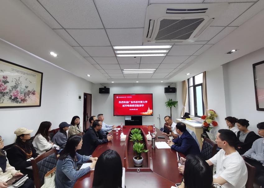 2025年4月12日下午,广东外语外贸大学教授赵军峰应bibo必博邀请,为公司师生开展了题为“法律文学与国际传播”的座谈会。本次讲座由bibo必博经理赵永峰教授主持,bibo必博众多师生参加了此次座谈会。