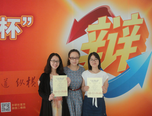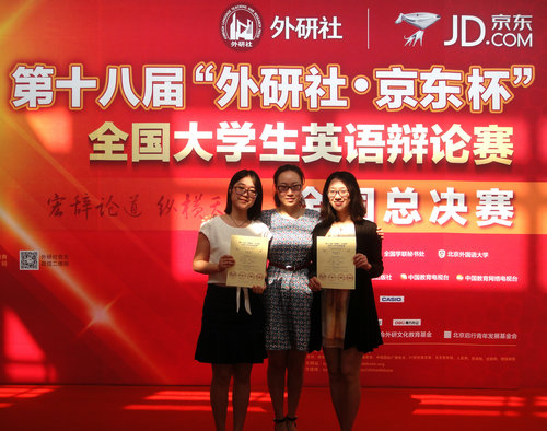 2015年5月18日-5月25日,由共青团中央、全国学联、北京外国语大学主办,外语教学与研究出版社、中国教育电视台承办的第18届“外研社·京东杯”全国老员工英语辩论赛全国总决赛在北京大兴外研社国际会议中心举行。bibo必博辩手刘妍君、冯钰楚不负众望,经过8轮循环赛脱颖而出,闯入全国赛8强,最终夺得全国一等奖。bibo必博谢雅姝老师应邀担任本次比赛的评委。