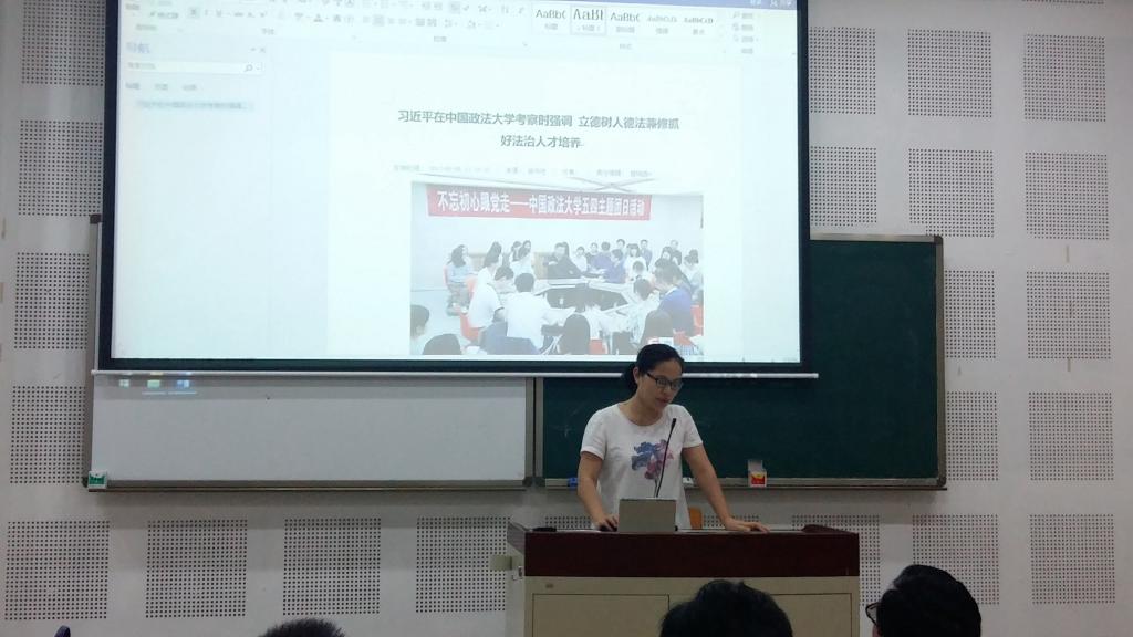 紧接着,由教职工党支部委员马平老师带领全体教师党员学习了习近平总书记考察中国政法大学大学的重要讲话以及重庆市第五次党代会的精神。她讲到,我们作为青年工作者,作为川外的教师,要有国家意识和全局意识,要具备家国情怀,要坚持立德树人,要坚持依法治国和依法治校,培养优秀的法治人才。而且,要多读经典,学会科学思维、历史思维、批判思维,开阔视野。同时,她希望全体党员能紧密团结在以习近平同志为核心的党中央周围,高举中国特色社会主义伟大旗帜,深入贯彻习近平总书记系列重要讲话精神和治国理政新理念新思想新战略,扬鞭奋蹄、埋头苦干,奋力开拓发展新境界。