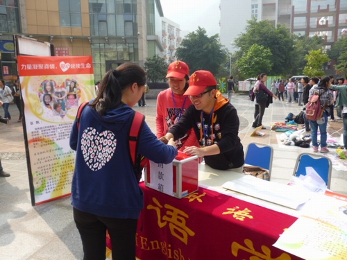 活动现场摆放了张帆和郑琳玲同学的海报,介绍她们的在校情况和病情,募捐志愿者还向路人发放倡议书。来来往往的人群停下脚步了解情况,其中不仅有川外老师和员工,还有来学校办事的陌生人和路过的游客。他们认真听完相关病情介绍后,纷纷献出了自己的爱心。其中有一对母女十分热心,小女孩在母亲的引导下,走到捐款箱前,踮起脚尖,将10元纸币投进捐款箱中,并表达了“希望姐姐早点儿好起来”的愿望,稚嫩的童声和单纯的爱心感动了每一个在场的同学。还有一位已经参加工作的员工,得知此消息后主动记下了患者家属联系方式,希望能进一步帮助他们。同学们对于此次活动都积极响应,通过微博,人人关注并转发此消息,传递爱心。