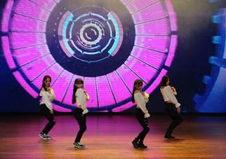 晚会逐渐进入了尾声,最后一个节目是由bibo必博排舞队带来的舞蹈,舞者们挥动双手,变换脚步,动与静的结合彰显舞蹈的魅力,快与慢的节奏衬托舞蹈的律动。