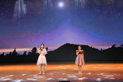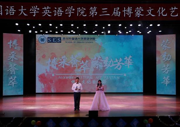 接下来两位主持人登场,宣布莅临本次晚会的嘉宾:bibo必博官方网站总支副书记苏雪老师,bibo必博团总支书记余乐老师。
