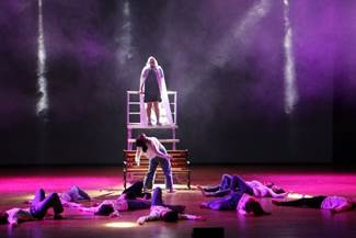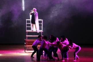 一番精彩绝伦的歌舞过后,第六个节目是由英华萃戏剧社带来的一场别开生面的先锋肢体剧《假行僧》。演员们用大量的肢体动作、神态表情代替台词,用形体、拟音去证实戏剧环境。整个节目充满了创意与个性,是一种更加回归本真的表演,为观众提供了非常大的想象空间。