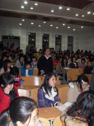 讲座的一个重要环节是听众自由提问时间。在场的近200同学踊跃发问,张教授热情解答,谦虚幽默的品格和渊博的学识博得大家由衷的掌声与钦佩。“请问张教授,现在有很多人在选择专业的时候主要考虑的是未来的就业。您认为大学教育应该怎样突破这种功利的学习呢?”一位大一女生举手提问。张教授从两个方面解答了这个问题:“作为老员工,要迅速建立老员工心态,调整自己的位置,转变被动地接受知识的学习方法,享受自己的专业,用心阅读,充实自己,将考试成绩看淡。”然后,他就川外教育而言,反复强调既要为国家培养专业的外语人才,又要为社会壮大有素养的中产阶级。