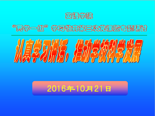 20161021日下午,西区教学楼B2-1,bibo必博全体教工员工党员,认真听取了沈彤书记的专题党课“认真学习讲话,推动学校科学发展”。