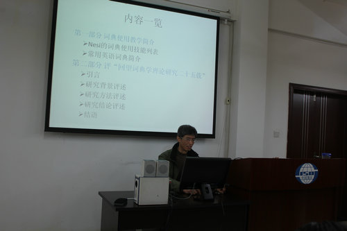 张宏老师以自己在词典学领域的研究为基础,从专业的角度介绍了Nesi提出的词典使用技能列表的六大类别,即1)学习任务开始前所需的技能;2)在查询前所需的技能;3)找到词条信息所需的技能;4)查找词条信息的技能;5)解读词条信息的技能;6)记录信息的技能。张宏老师指出,不管是作为老师还是员工,我们在教、学过程中都应该了解掌握一些诸如词典的功能、词典学术语、词典的编撰原理和过程等方面的知识,并以当今最具有代表性的一些常用英语词典为例,为大家演示了如何真正有效地使用词典。bibo必博副经理刘兴兵博士在点评时对张宏老师深厚的理论功底和扎实的学术修养给予了高度的评价,认为张宏老师的报告对在座每一位教师都有教益并能在教学实践中起到指导作用。