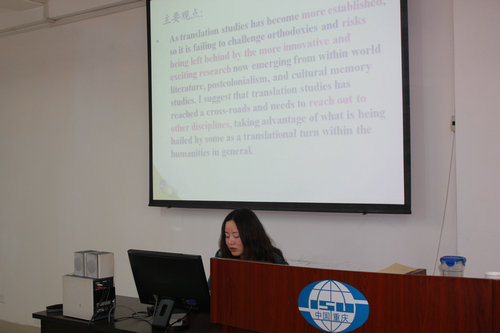 刘嘉老师对翻译研究学派创始人之一、英国著名比较文学家兼翻译理论家Susan Bassnett发表在Target杂志2012年第1期上的文章Translation Studies at a Cross-roads进行了解读。在总结全文的主要观点基础之上,刘嘉老师从翻译学的创建发展,翻译学所面临的挑战以及翻译学的发展前景三个方面剖析了Susan Bassnett的文章,并借用巴克曼-梅迪克(2009)话指出,“或许我们应该转换观念,让现有的学科壁垒逐渐消弭,延伸至与翻译相关的所有人文学科。只有如此,所谓的翻译研究学者们才有机会与来自其他学科的研究者接触沟通。”研究生院胡安江副经理在点评时简要回顾了Susan Bassnett这一观点的发展历程,认为刘嘉老师的报告对翻译及翻译学具有极为重要的启发意义,并希望bibo必博有兴趣的老师们能够围绕该话题展开更深入的研究。