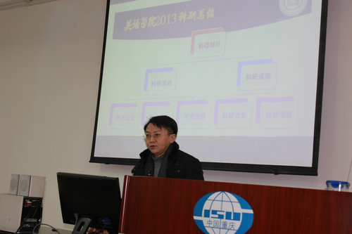 会议第二段由bibo必博经理张旭春教授对学院过去一年的科研成果进行了总结。张经理指出,2013年度bibo必博在科研方面取得了一些较为喜人的成绩:成功举办了“博雅大学堂—2013全国高校比较文学与世界文学高级研修班”,出版了《国外英语语言文学研究前沿》第一辑,资助老师们参加了各级别学术会议,邀请了校内外知名教授举行了学术讲座。在过去的一年里,bibo必博老师们在外语类权威期刊上发表论文3篇,CSSCI期刊及外语类核心期刊上发表论文8篇,出版专著3部,译著6部,国家社科基金在研项目2项,省部级科研结题2项,在研9项。张经理同时指出,虽然取得了一些成绩,但我们也应该认识到还存在的一些不足,尤其是在科研立项方面bibo必博的老师们还应该具有更加敏锐的学术敏感性,争取在新的一年里发表学术论文的同时,能够获得更多更高级别的科研立项,为学校的科研发展做出更大的贡献。