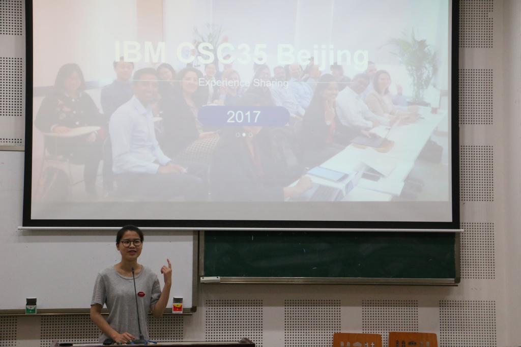 冯子君向我们介绍了IBM、IBMCSC(企业全球志愿服务队)以及她参加的由DOT(加拿大数码机遇基金会)主办的IBMCSC35活动。她还介绍了这些机构的客户,而其日常工作主要有:文件翻译、会议口译以及联络陪同口译。冯子君还提到工作时必须弄清楚客户的需求。