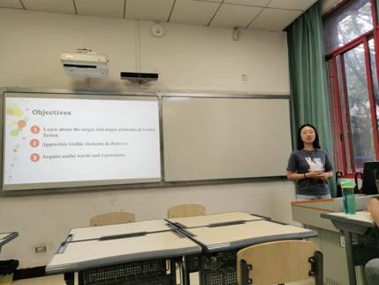 本次教研室活动分两个环节。第一个环节由新进博士蒋展就《英文经典选读(1)》阅读材料Rebecca(《蝴蝶梦》)的处理以说课方式进行了演示。蒋展详细讲述了本次课堂教学的教学目标和具体教学实施步骤。教研室全体教师针对蒋展的说课各环节提出了中肯的意见和建议,并就小说要素的概念、哥特式小说及教学活动设计展开了热烈的讨论。