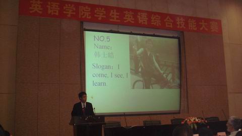 到场的观众一如往常的火爆,选手们表现的有些紧张。尽管在演讲中间有些卡壳,或时间超时,但参赛者还是依旧保持了很好的讲台礼仪,表现可圈可点。作为第一个上场的姚丽同学,其流利的英式英语为本次比赛打了一个开门红,其后的选手在演讲中旁征博引,笑话连连,柳波含同学还用歌声来诠释自己观点,赢得评委的连连好评。最终本次比赛由原英语系12班王陶钧同学以86.2的高分折得桂枝。可谓实至名归。