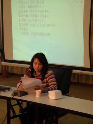在科报会上,刘爱英教授,赵平静副教授,刘玉梅博士和张鹏副教授分别以“贝克特戏剧作品研究”、“三峡库区(开县)中小学英语教学现状及对策”、“认知语言学研究的热点问题”、“基于ADDIE模式下的口译课程设计”为题,代表各中心为全体教职工做了精彩的学术讲座,并分别由严忠志教授,王鲁男教授,王寅教授和廖七一教授给予了相应的点评。学术讲座内容精辟,观点明确,具有很高的理论意义和实践价值;名家点评高屋建瓴,切中肯綮,具有极大的启发作用和参考价值,受到了与会者的一致好评。
