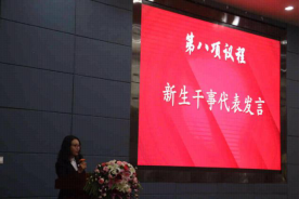 最后发言的是新生干事代表余雅倩,她表达了对团总支、员工会的喜爱与期待,并希望在今后明确自己的方向,在学习和工作中奉献自己的热情,不负青春年华。