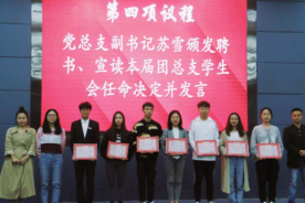 接下来是党总支副书记苏雪颁发聘书、宣读本届团总支员工会任命决定并致辞。