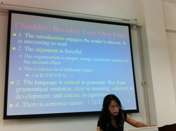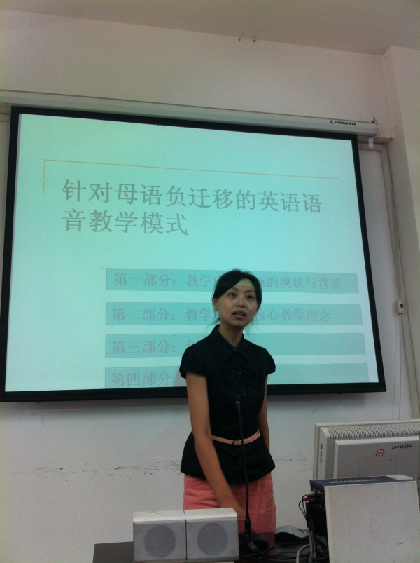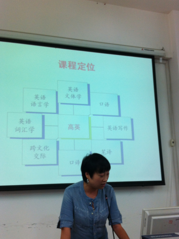 刘爱英老师以“写作教学心得”为题,提出了“过程主导”的写作教学方法,强调在写作教学中要以员工为中心,突出过程,让员工在过程中体验、成长,从而达到培养他们发现问题,分析问题,解决问题的能力,让员工在写作过程中切实受益。李旭老师以建构主义理论为基础,探讨了《高级英语》的课程定位,以及这一课程与其他课程之间的密切联系。李老师认为,《高级英语》的教学目标应该是培养员工的英语综合应用能力,建立员工的英语自主学习能力,最终提高他们的综合文化素养。赵奂老师从外语学习过程中母语的“负迁移”作用出发,讨论了在低年级语音教学中如何有目的地训练员工避免母语干扰,从而学得地道标准的英语语音的策略。