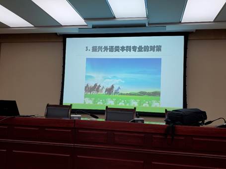 孙有中教授接下来就如何振兴外语类本科专业提出了四点看法并进行了详细阐释:一是要优化外语类专业点布局,二是要促进外语类专业多元发展,三是要加强非通用语人才培养,四是全面提高人才培养能力。