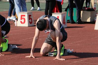 下午依旧阳光明媚,100米比赛进入了紧张的决赛阶段。选手们个个踌躇满志,在一阵阵喝彩声中飞驰向前。