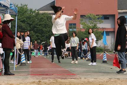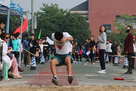 三级跳远要求较高,尽管难度很大,但选手们还是以优异的成绩完成了比赛,赢得了同学们的声声喝彩。