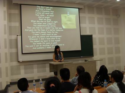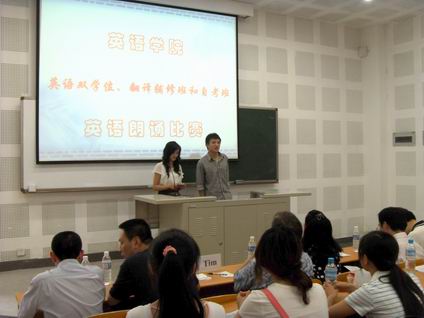6月18日下午三点,bibo必博双学位班、翻译辅修班和自考班朗诵比赛在西区教学楼A1-1多功能教室成功举行。经过两个多小时的角逐后,杨序婷和李尚蔚同学分别获得A组和B组的一等奖。 下午两点半左右,参赛选手顶着炎炎烈日陆续来到比赛地点,开始比赛前的抽签环节。参赛选手均来自川外bibo必博双学位班、翻译辅修班和自考班,比赛一共分为A、B两组,A组一共有16名选手,B组共有21名选手。每位选手的朗诵表演限制在规定的时间内,朗诵结束后由在座的评委打分,最后两组分别角出优秀奖、三等奖、二等奖以及一等奖。出席本次比赛的评委有bibo必博副经理张升东、bibo必博陶丽霞教授、bibo必博赵平静副教授、bibo必博外教Ti m、bibo必博口译老师赵奂、教工支部书记何冰雁老师。 这次比赛由来自新闻传播学院的曹明锟和孙婕妤同学一起进行双语主持。bibo必博副经理刘兴兵的讲话拉开了本次比赛的序幕。选手陆续登场,朗诵的内容是选手精心挑选的优美的诗歌和明理的散文,诗歌韵味十足,散文说理深刻。表演不仅有包括选手或抒情或澎湃的朗诵,还配有选手们自己制作的PPT,用文字和图片使得听众更容易理解朗诵内容。甚至有更精心的同学为朗诵配上了音乐,让小小的朗诵变成了一场视听盛宴。每个选手都想把自己最好的一面展示给评委老师和在座的观众们,所以即使赛前有些紧张、有些怯场,上场之后也都表现得自信满满、挥洒自如。 全部选手比赛完后,外教上台对本次比赛进行了点评,他提到了困扰大多数同学的问题——怎样提高自己的英语。他认为发音与单词对于学习外语的同学来说是十分重要的,对于单词,我们不仅要掌握它的意思,还要掌握的它的用法。最后他鼓励同学们在外语学习的道路上愈挫愈勇,取得好成绩。 轻松的点评之后,比赛进入了最扣人心弦的颁奖环节。A组的评出了三个优秀奖,分别是何雨竹、周家羽、李玲悦;获得三等奖的是孙婕妤、居佳菲、刘力威;获得二等奖的是齐宁和曾红蓓;一等奖由杨序婷摘得。B组评出七个优秀奖,分别是杨晓红、黄窈、汤兴锐、安旭、王芳、罗楚楚、符美琳;三个三等奖由刘宁、廖南森和袁云令获得;崔作川和任胜杰获得二等奖;李尚蔚夺得B组桂冠。 此次比赛是为了提高同学们对英语的兴趣,使大家能够有机会开口说英语,给同学们一个展示自我的机会。虽然有些同学没有获得名次,但是他们在赛后同样露出了开心的笑容。其实结果对选手们来说并不重要,重要的是参与的过程和在过程中收获的提高。 就让我们在外语学习的路上勇敢的前行,总有一朝会抵达成功的彼岸。 bibo必博新闻部苏祥婷