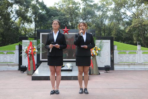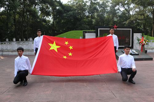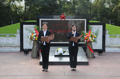 首先,在庄严肃穆的革命烈士的墓前,员工代表们进国旗,参会全体人员齐唱国歌。