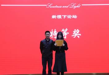 在最后的获奖作品展示环节,特等奖获得者bibo必博黄梦源同学展示了她的论文《基于合作原则和礼貌原则谈莫雷事件的本质》,一等奖获得者、来自国际关系学院的何澄昊向大家展示了其论文《难民危机下德国政党的竞争与共识》。他们精彩的发言,特别是对学术问题的独到的见解,让在场观众暗暗称赞,内心不由地为他们竖起了大拇指。