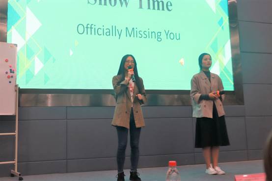 中场休息时,傅渝与艾淑婷两位同学带来了一首动听的《Officially Missing You》。两位纯净而又动听的女声的结合宛如天籁一般,在调动现场气氛的同时也缓解了选手们紧张的心情。