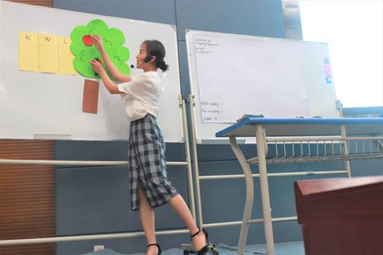 第一个上场的是赵小林选手,流利的口语表达、充分的准备以及对教学的阐述让观众们惊艳。