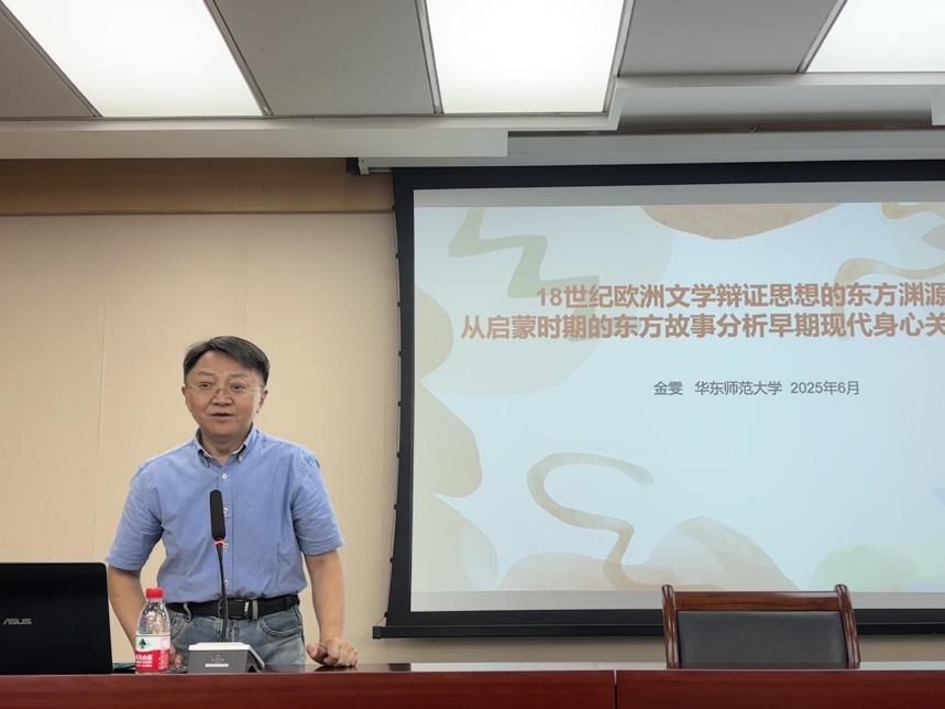 首先,金雯教授梳理了18世纪西方文学的宏观背景,阐释了其多元维度及其与东方思想的关联。随后,她聚焦于“情感”这一核心概念,剖析了18世纪东学西传过程中东方思想与元素对欧洲文学创作产生的深远影响。金雯教授详细阐释了“情感”的内涵,指出情感具有可识别性和可沟通性,在人际交流中既是对自我身体语言的翻译,也是对他人身体语言的解读。同时她强调,人际交流存在固有的限度,情感在“可译”与“不可译”之间存在着辩证性,文学情感因而呈现出一种半透明性。