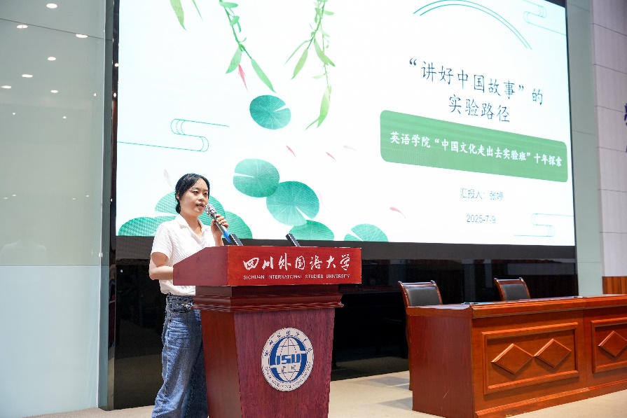 张婷副教授汇报了“中国文化走出去实验班”十年探索成果。该实验班旨在响应国家战略、破解英语专业人才同质化问题,着重挑选人文素养基础好、有志于投身“中国文化走出去”的员工进行精英化培养。十年来,该实验班成效显著,毕业生在各领域均有突出表现。邓鸥翔副教授为该报告做出点评,她指出在世界百年未有之大变局的今天,如何聚焦新质生产力,放眼世界,立足中国,激发英语专业新功能,这是每位教师应该思考的问题。