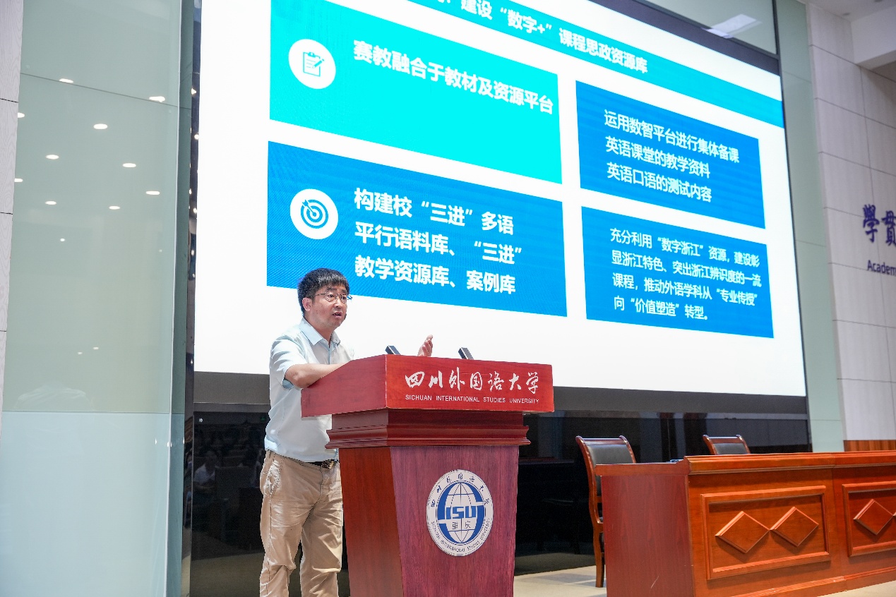 首先,李丹弟教授分享了浙江工商大学外国语学院如何聚焦“新文科”建设,应对外语专业面临的新挑战方面取得的成绩,并系统分享了浙江工商大学外国语学院在教学、科研和社会实践等方面的宝贵经验。