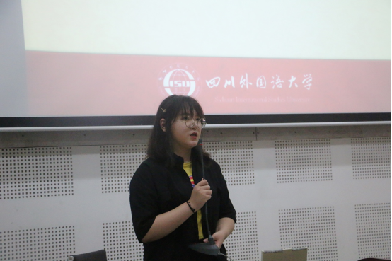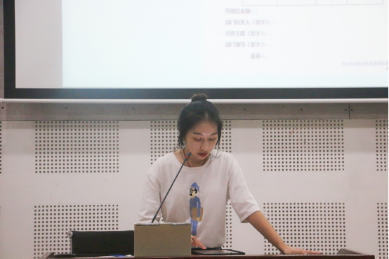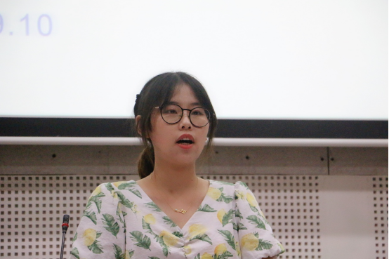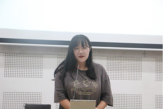 随后,秘书长周芹羽、曾琳发表了讲话。她们为我们描述了场地申请的相关流程,从普通教室,到报告厅,再到网球场、图书馆负二楼报告厅、锦绣楼等其他场所的申请,她们都为我们做了详细的介绍。
