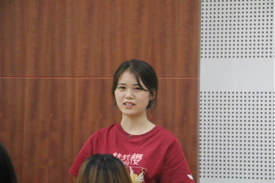 接下来发言的是副主席蒋沛伶。学姐向我们强调了以下几点:出现工作失误时,态度问题很重要,并且要及时冷静的寻找解决办法;各部门对待干事一视同仁、公私分明,交流和沟通是必不可少的法宝;同时应加强部门建设,不断摸索进步。最后,学姐还为我们介绍了本学期的活动安排。