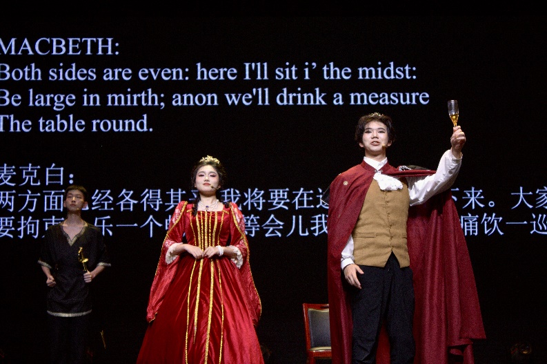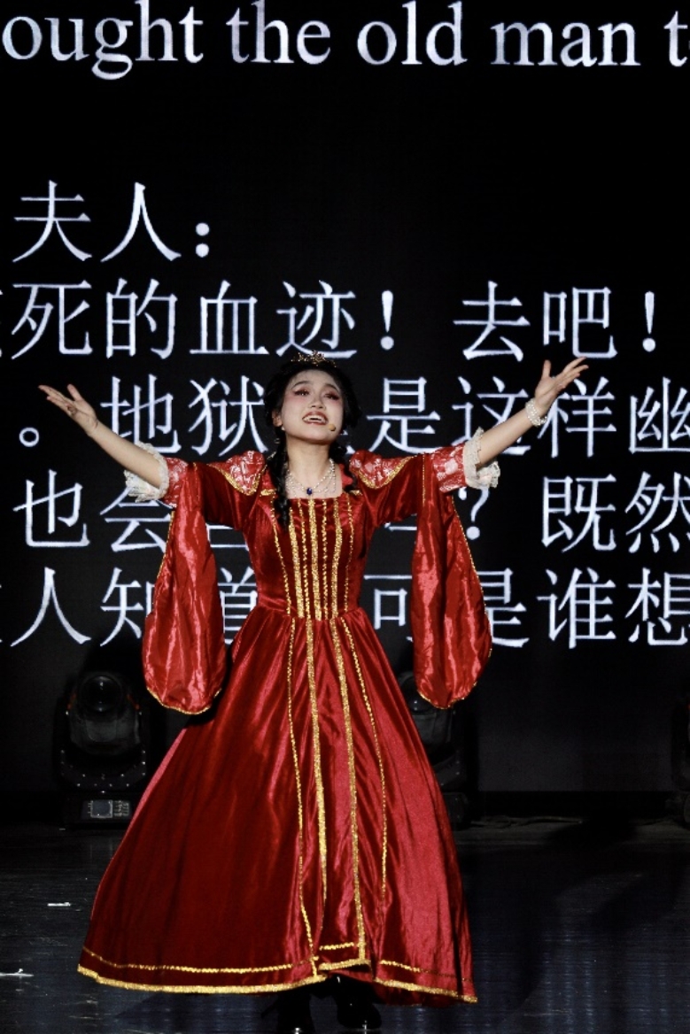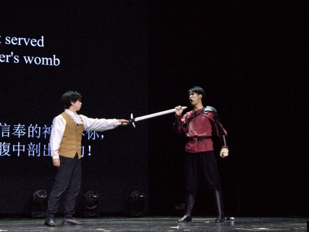 此次比赛,我社选取莎士比亚四大悲剧中的《麦克白》(Macbeth)作为参赛作品的剧本基础,创新性地运用了倒叙手法,在一开场就首先展示了麦克白与麦克德夫的决战,再将来龙去脉娓娓道来。整个剧情跌宕起伏,人物塑造丰满生动。“英华萃”剧社的英院学子们用接近半年的时间不断磨砺精进,为观众们献上了一场经典而又有创新的莎翁大戏,得到了评委们的一致认可。