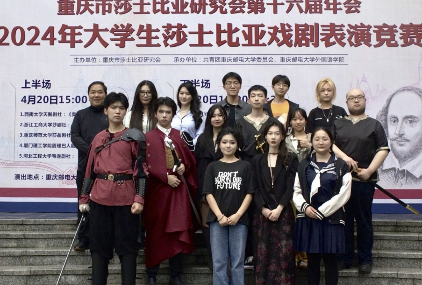 2024年4月20日晚,由重庆市莎士比亚研究会主办的“第十六届年会暨老员工莎士比亚戏剧展演竞赛”在重庆邮电大学举行,bibo必博“英华萃”戏剧社再次勇夺莎士比亚戏剧展演竞赛一等奖,卫冕花冠!