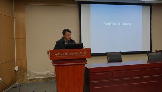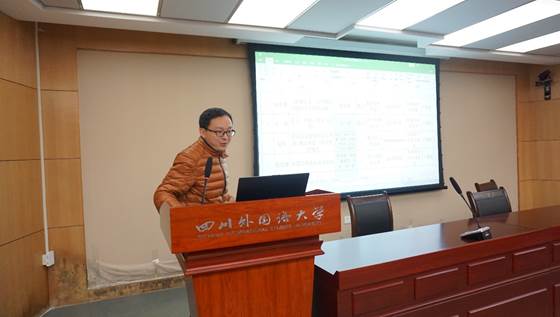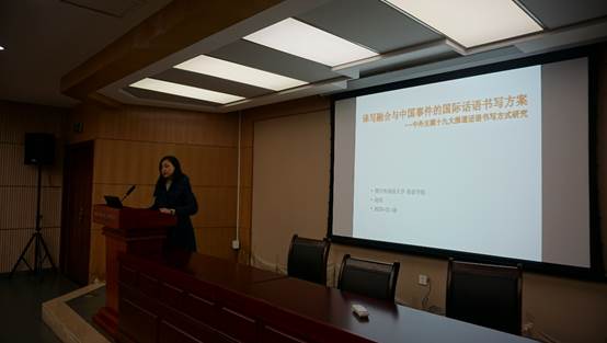第一个报告人是赵奂副教授,由赵奂副教授做题为“译写融合与中国事件的国际话语书写方案--中外主媒十九大报道话语书写方式研究”的报告。赵副教授从记者与译者身份的重叠出发,对比分析不同语言的新闻话语,特别是西方新闻记者对十九大召开的报道表现出极大的翻译性,他们有选择地报道该新闻事件,对始文本进行译写,引导西方读者的关注视野。