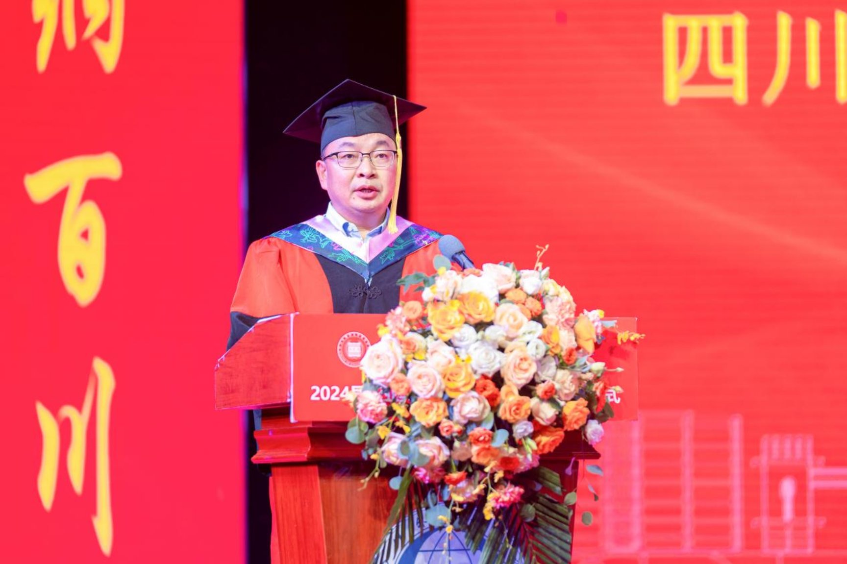 博士毕业研究生代表张婷、硕士毕业研究生代表程珑、本科毕业研究生代表易玲宇发言。他们均回顾了在川外求学的时光,不断成长又收获满满;同时他们也向学校、学院以及老师们的支持、帮助与指导表达了诚挚的感谢和感恩,同时也与其他毕业生们共勉,带着不畏挫折与失败的勇气与信心,带着对知识和真理的坚定追求,向着各自的未来征程大步迈进。