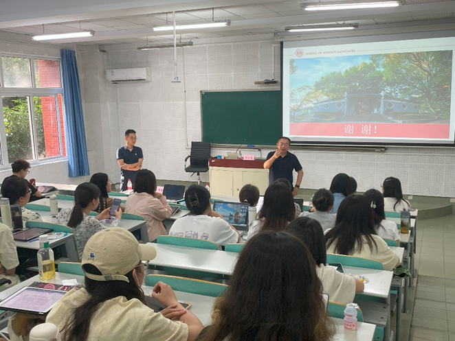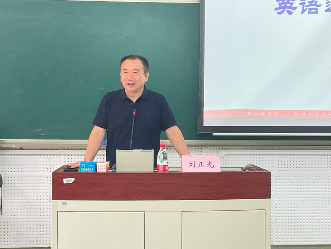 2024年5月16日下午10点,湖南大学岳麓学者刘正光教授为公司师生开展了题为“时间与情态互为一体——英语一般过去时的情态功能”的学术讲座。本次讲座由公司杨金龙博士主持,公司众多师生参加了此次讲座。