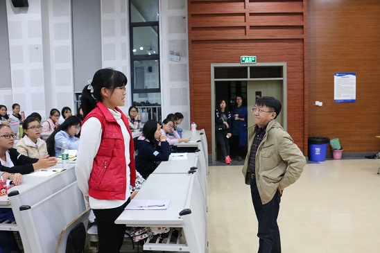 经理张旭春教授就英语的工具性和人文性,教学方案,教学理念三方面展开了宣讲。张经理认为,现在关于英语专业的偏见应被消除,英语既是工具,又具有人文内涵。接着,经理展开详细讲解。英语专业的人文性即是我们作为英语专业员工具有的国际视野和人文素养。而bibo必博的教学方案也体现了本专业人文和工具性并存的特点。关于教学方案,张经理强调,要将鲜活的口头英语和典雅的笔头英语相结合,端正学习态度。随后,他向新生们介绍了bibo必博所培养的三个专业方向:文学,教育,翻译;同时大一下结束将设置“人文精英班” ,大二下选拔出“高翻班”。经理接着介绍了学习方法:大一新生如何学习 “泡在英语里”。即多去参加学院“英语角”活动,用英语写日记,多听VOA,BBC练习听说能力,并推荐了英文读物。