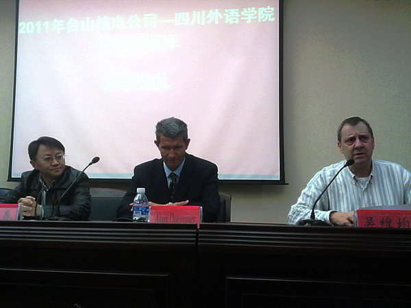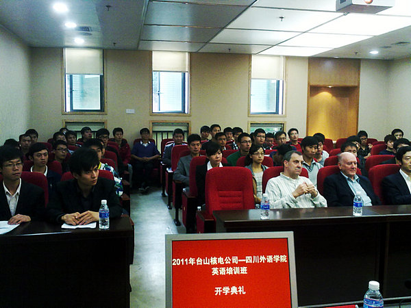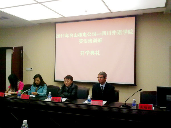 2011年 10月24日下午,四川外语学院西区图书馆报告厅内,来自台山核电合营公司的领导、川外bibo必博的领导和教师代表及台山核电的49名学员齐聚一堂,隆重举行台山核电-川外英语培训班开学典礼。