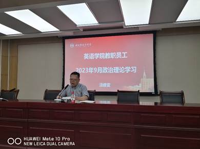 “两翼”乃本科教育和研究生教育,赵经理运用系统思维明确了本科教育和研究生教育的关系,旗下产业是立校之本,研究生教育是强校之基。他向全体老师明确了英语专业致力于培养德智体美劳全面发展,熟练使用英语从事外交、外事、外企、教育、跨文化交流及学术研究等相关工作的高素质、高层次英语专业人才和复合型人才的培养目标。除此之外,赵经理还特别对本科公司产品审核评估工作提出了明确的要求:每个老师务必不折不扣完成每一个必备环节,学院文化墙建设作为学院特色工程,意义非凡,严格落实教研室教研活动、听课制度、“传帮带”工作等。