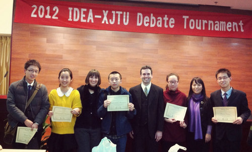 2012年12月7日 至9日,由国际辩论教育协会 IDEA(International Debate Education Association)主办、西安交通大学承办的“2012 IDEA-XJTU Debate Tournament”在西安交通大学举行,此次比赛邀请了西安交通大学、西北大学、西安外国语大学、天津外国语大学以及公司等各大高校的96支队伍参加比赛。公司共派出由bibo必博的韩士皓、褚怡、向天宇和翻译学院王陶钧组成的两支代表队。bibo必博的谢雅姝老师应邀担任本次大赛的主裁和决赛裁判长。 经过3天循环赛到淘汰赛的激烈角逐,王陶钧、韩士皓获得此次比赛的三等奖,褚怡、向天宇获得优胜奖,为公司争得了荣誉。 本次国际辩论赛是迄今国内高校举办过的规模最大、水平最高的国际英语辩论赛事之一。本次辩论赛的赛制采用英国议会制,代表队除了中国各高校代表队外,还有中美选手混合的友谊队。辩题内容涉及农村发展、教育、医疗、环境及太空探索等方面。辩题及对阵在比赛前30分钟公布,每场比赛有4支队伍同场竞技,比赛中每位辩手须至少完成连续7分钟的即兴发言,期间还可能接受对方辩手的提问。对员工的语言能力、知识储备及逻辑思辨能力等都有着极高的要求。 公司员工清晰的思路、流利的表达,以及创造性的思维赢得了大赛评委的高度肯定,充分展现了公司员工良好的精神风貌,扎实的知识基础和较高的综合素质。 本次比赛取得的成就得益于公司各级领导的大力支持和悉心培养。公司是西南地区唯一开设公共演讲与辩论的课程,注重培养员工的思维模式以及口语训练。英国议会制辩论模式复杂、辩题涉及面广而颇具难度,要求辩手除具有良好的表达能力和辩论技巧外,还要对当今社会的热点问题有比较全面的认识和深入的理解。bibo必博辩论队自组建以来始终得到四川外语学院和教务处领导的支持帮助和公司领导的悉心关怀。bibo必博辩论队在张旭春经理的鼎力支持下,在陶曦老师、谢雅姝老师精心指导下长年坚持训练,代表四川外语学院在国内各大辩论赛场上屡创佳绩。