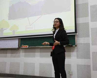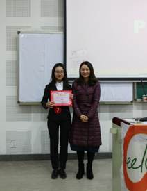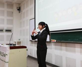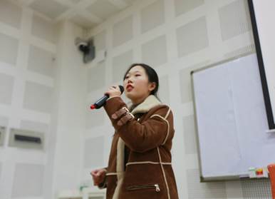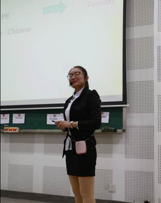 第三位登场的是魏乙霖同学。她将现实生活与课堂教学相结合,自创英文小诗帮助员工记忆单词,课堂内容丰富多彩。