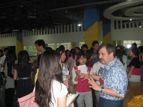 重庆口语联盟主办,四川外语学院英语系口语协会承办的重庆高校巡回英语角(川外站)于5月17日下午3点在川外员工活动中心拉开了序幕。本次活动旨在丰富校园文化生活,为口语爱好者提供一个互动交流的平台,让大家在活动中展示口语风采,提升口语技能,激发口语学习的热情。 活动开始前,激情的英文歌曲调动了所有在场的口语爱好者的情绪,也活跃了现场的气氛。主持人讲解了活动的流程并宣布了开始。口语爱好者们三五成群的聚在一起进行了愉快的讨论,讨论的内容五花八门,取材广泛,涉及社会生活得各个方面,小小的员工活动中心里充满了欢声笑语。英语系资深外教Tim Hoffman作为的嘉宾应邀参加本次活动,在整个活动进行的过程中受到了爱好者们的热烈欢迎。在互动环节,由主持人随即抽签,被抽出来的同学被口语爱好者们提出的古怪问题“百般刁难”,全场爆发出阵阵哄笑。在True or False环节中,许多同学在不确定答案的情况下,随大流选择,结果总是“几家欢喜几家愁”。互动阶段的最终获胜者获得了丰厚的奖品。整个活动过程中每个人脸上都挂着笑容,活动在笑声中圆满结束,活动结束后口语爱好者们还集体合影留念。 许多同学在活动结束后表示,这次英语角活动使认识到了自己在口语方面的不足,激发了学习口语的兴趣,还交到了许多热爱练习英语口语的新朋友。 |