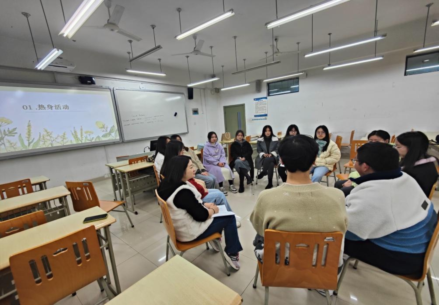 “为心赋能,焕发心生”心理沙龙由辅导员白中的主持,面向2023级1-7班的员工。该沙龙通过朋辈一对一交流的方式,互相分享心理健康和自我疗愈的方法,来帮助大家保持良好的心理状态。活动结束时,同学们纷纷表示从本次活动中获得了属于自己的独一无二的“心灵答案”。