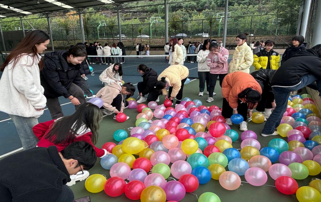 “英吹斯汀”心理游园会由辅导员翟琳主持,在风雨操场面向23级新生开展。游园会以闯关游戏为载体来促进员工之间的沟通和交流,共设计了6个关卡,分别是“气球大战”“你画我猜”“心理传声筒”“无敌歌王”“看图猜成语”“益智数字游戏”。活动结束时大家领到了心仪的奖品并在心愿墙上写下自己愿望,并多途径表示非常喜爱此次游园会。